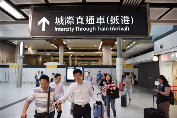6月13日,在香港红磡火车站,搭乘广九直通车的旅客抵达香港。