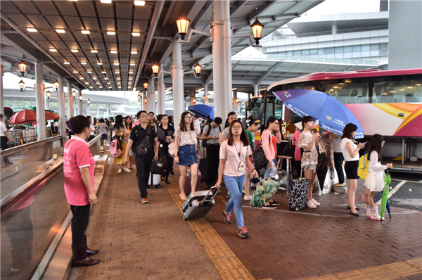 香港回归20年来,随着内地与香港人员交流愈加频繁,越来越多连接两地的工程落成,从每年都在增加的直通车班次到粤港基建工程;从往返两地的巴士到海上航线……这些工程,极大地加强了粤港两地之间的联系,为两地人员往来提供便利。