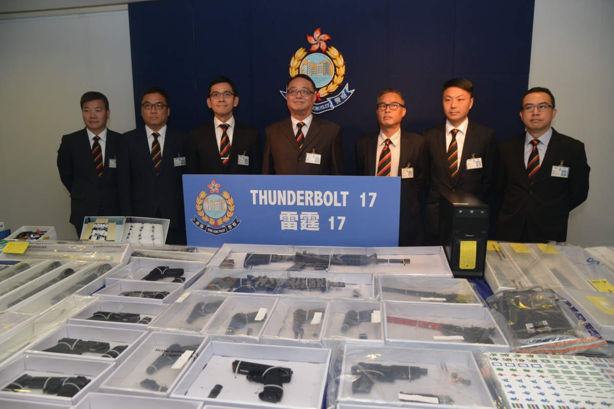 警方特別提及,年初發現有新的販運仿制槍械犯罪模式,犯罪集團利用社交平台,接受內地人士訂單,再在外地訂購,經香港運返內地。犯罪集團會將仿制槍械及配件分配給水貨客運返內地,警方在行動中合共拘捕8男2女,其中5人是主腦,部分人有三合會背景,檢獲28支高性能仿制槍械及配件。