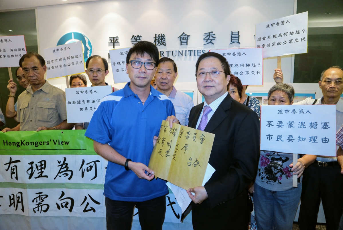 請願成員們高叫:「譴責有理由,為何抽起」、「陳章明需向公眾交代」、「平機會有違平常做法」等口號,并向陳章明遞交請願信。陳回應說,平機會作為執法機構,須以法律為依歸,當日曾諮詢資深律師意見,對方指梁游的言行并未構成違法。再者,當時二人仍在訴訟程序,因此絕對不宜發表任何影響訴訟結果的意見。陳章明補充稱,今年4月以個人名義譴責梁游二人行為不恰當,期望大家能夠互相尊重,讓事件得以解決。「政中香港人」發言人劉礎慊其后向記者說,陳章明的回應能否釋除疑慮,應交由大家判斷,又希望他有進一步答覆。