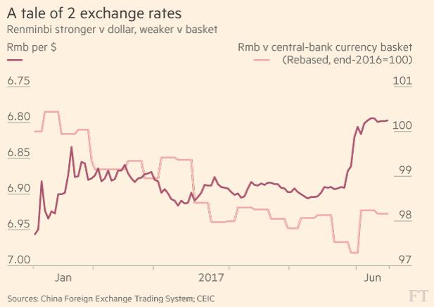 但是,相比其他新興市場貨幣,今年以來人民幣兌美元匯率的升幅要小一些。其結果是,2017年迄今,人民幣相對于貿易加權的一籃子貨幣實際上走低了。