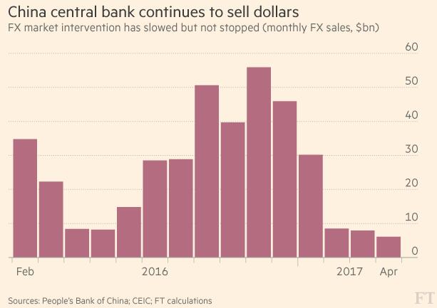 根據國家外匯管理局(SAFE)的數據,從1月到4月,相較于可比的人民幣買入量,銀行代表公司和私人客戶以及銀行本身賬戶的購匯量每月平均高出140億美元。盡管每月購匯凈額低于2016年月均的280億美元,但這些數據仍似乎表明,從供需角度看,人民幣匯率應該下降。