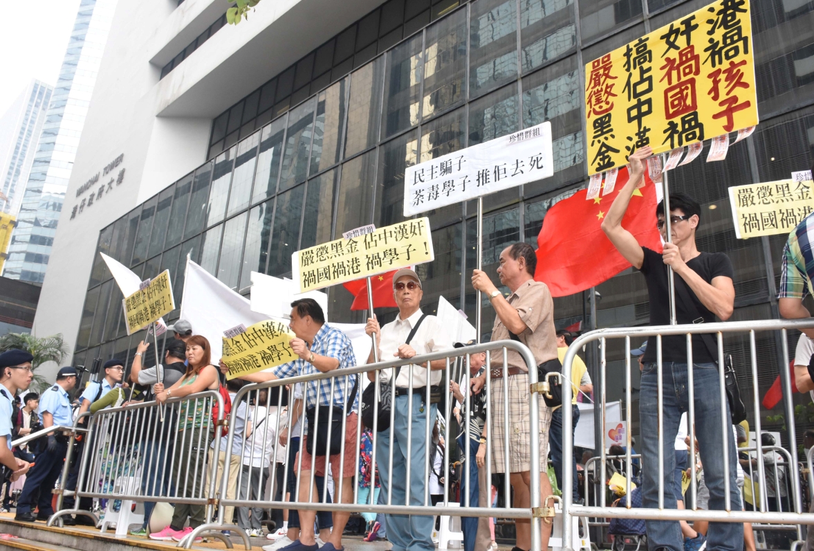 【香港商報网訊】「占中三丑」戴耀廷、陳健民及朱耀明等9名發動及參與2014年違法「占中」人士,分別被控「串謀作出公眾妨擾」、「煽惑他人作出公眾妨擾」及「煽惑他人煽惑公眾妨擾」等罪。案件昨於區域法院提訊。網民自發組織「珍惜群組」一行約30人昨日帶同標語及高叫口號到灣仔裁判法院請願,要求法庭嚴懲涉嫌有份策動「占領行動」及「旺角暴亂」的9名被告,直斥各被告是「叛國禍港政棍、學棍、訟棍」,收取外國黑金,荼毒各院校莘莘學子,促請法庭彰顯法治。