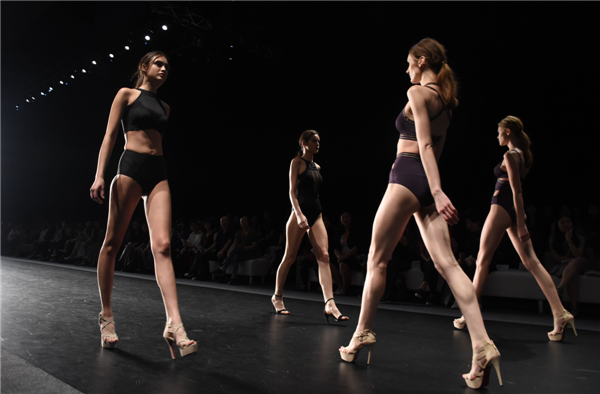 模特在“CENTRESTAGE”香港国际时尚汇展上展示新设计的时装(2016年9月8日摄)。