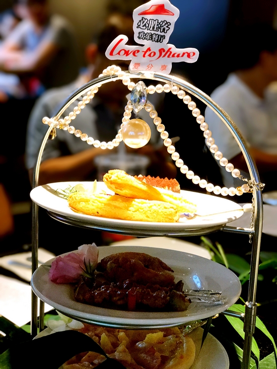 在HelloVintage团队的创意设计下,时尚必胜客的美食也登上了摩登"食尚"舞台。源于1840年、风靡上流社会的英式下午茶三层塔,搭配英国复古餐具,香草手指泡芙、爱之丘提拉米苏、冰淇淋等甜点美味又好看,气质名媛气息弥漫全场;在夏日莲蓬和鲜花的衬托下,Dior水钻花朵造型胸针和CHANEL复古吊坠项链镶嵌其中,浓情烤翅顿时奢华感Max。高颜值的美食,文艺浪漫的环境,带来无与伦比的下午茶美妙体验。