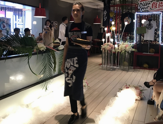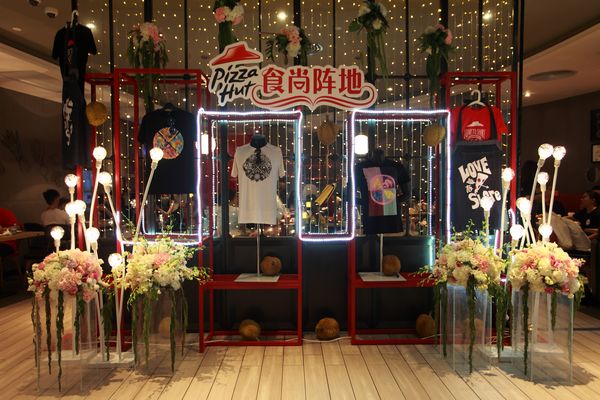 活动吸引了众多潮牌以及时尚达人的参与,潮牌还十分创意地在必胜客进行了Pop-up Store Show。Pop-up Store(快闪店)是目前零售业的新业态,形式新、互动多、视觉冲击力强。