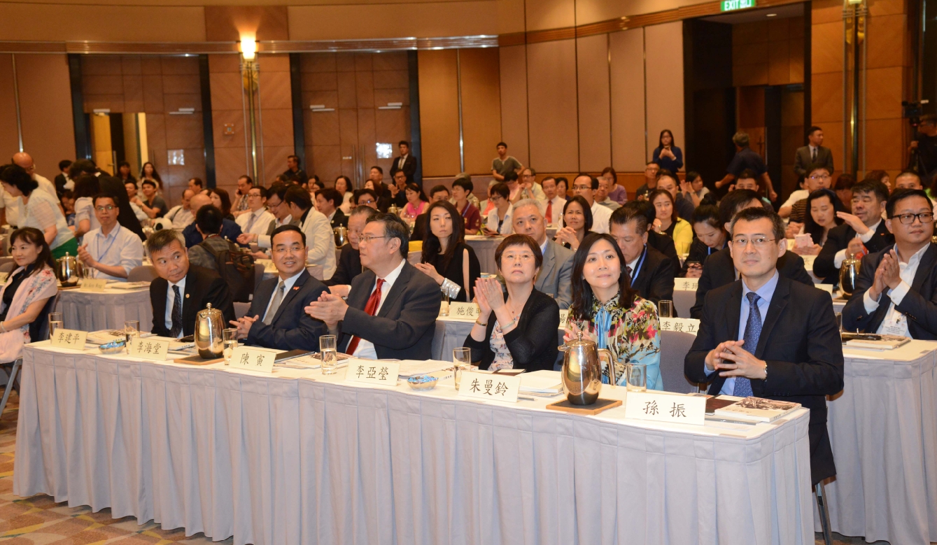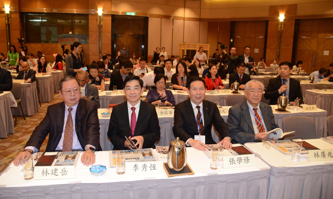 本港多为重量级人士出席论坛。图中前排左起林建岳、李秀恒、张学修、林广兆。记者 崔俊良摄