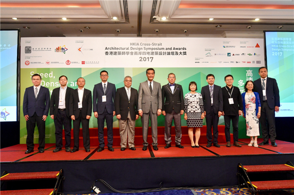 梁振英(左六)出席香港建築師學會兩岸四地建築設計論壇合照。