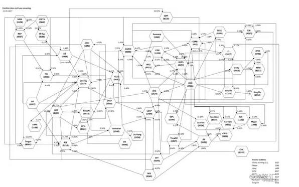 所以,你能看到創業板圍飛上市,暴漲暴跌,你能看到主機板這兩年工程股批量造殼,老千橫行,老千鼻祖威利國際(273.HK)還在換著馬甲坑人,如癌症般的老千還在擴散,前段時間DavidWebb還扒出50個上市公司錯綜複雜的老千族譜:
