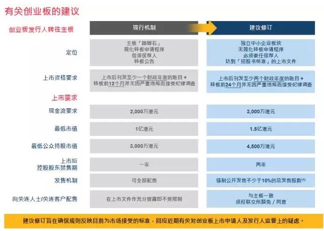 (c) 創業板申請人預期最低市值要求由1億港元增至1.5億港元,創業板公司的最低公眾持股市值要求也相應由3,000萬港元增至4,500萬港元;