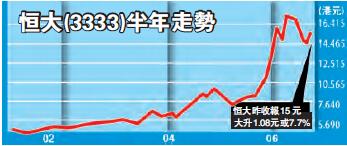 雖然如此,內房股人氣仍高漲,昨日多隻內房股跑贏大市。該板塊以恒大(3333)作領頭羊,升幅達7.76%,收報15元;融創(1918)升4.1%,收報14.22元;其他上升內房股有碧桂園(2007)升1%;雅居樂(3383)升2.7%;龍湖(960)升1.7%;大悅城(207)升4.5%;遠洋集團(3377)升1.6%;中國金茂(817)升2%。法國巴黎銀行駐香港的分析師此前曾表示,在嚴厲的限購政策環境中,大規模和多元化戰略才能讓房地產商蓬勃發展。今年一季度,恒大、碧桂園銷售位列行業前三,碧桂園更超越萬科沖上第一。得益於充足的土地儲備,今年前五個月,恒大、碧桂園和融創業績依舊強勢增長。