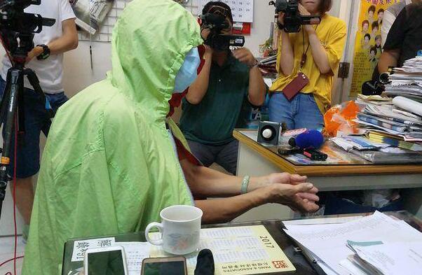 朱婆婆怕樣子在傳媒中曝光影響女兒情緒,戴上口罩穿雨衣接受採訪。