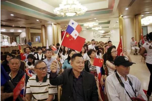 6月12日,在巴拿馬首都巴拿馬城的華人社區,人們參加巴拿馬與中國建交的慶祝活動。