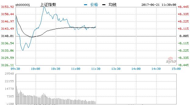 據新浪財經,6月21日消息,滬深兩市早盤受A股納入MSCI消息提振高開,開盤出現短暫下探後回升,兩市沖高後均震蕩回落,創指表現較弱,早盤成交量較為低迷。截止上午收盤,滬指報3144.71,漲0.15%,創指報1819.92,跌0.06%。從盤面上看,新疆振興、上海國資改革、化工居板塊漲幅榜前列,網絡安全、高送轉、粵港澳概念居板塊跌幅榜前列。