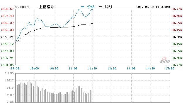 新浪財經訊 6月22日消息,滬深兩市早盤走勢出現分化,滬指在保險、銀行股的帶動下持續走高,滬深300指數創17個月新高,創指則窄幅震蕩,盤中多次翻綠。截止午盤收盤,滬指報3180.1點,漲幅0.76%,成交量1108億元;深指報10398.21點,漲幅0.3%,成交量1332億元;創業板指報1823.85點,跌幅0.05%。