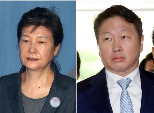 左為朴槿惠;右為SK集團會長崔泰源(圖源:韓媒)