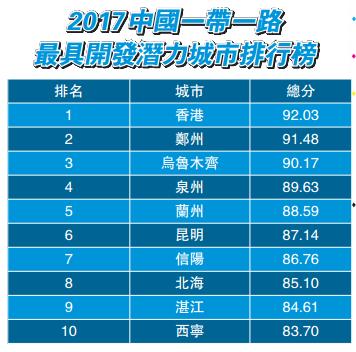 【香港商報网訊】記者邱媛媛報道:「2017全球(國家)城市分類優勢排行榜」昨公布,香港在新加入的「2017中國一帶一路最具開發潛力城市排行榜」奪冠,同時也位列「2017全球最具包容性城市排行榜」、「2017中國十佳誠信政府」榜首。