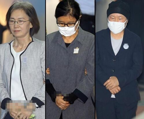 從左至右分別為:前梨花女子大學校長崔京姬、崔順實和前梨花女子大學新產業綜合學院前院長金慶淑。(圖片來自韓聯社)