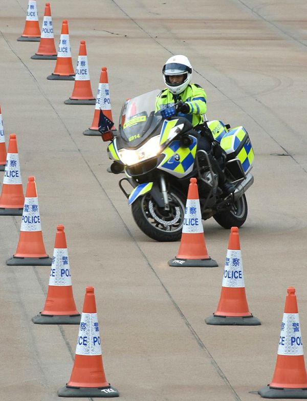 護送組遴選過程嚴格,選拔警員須駕駛鐵馬繞過「雙筒陣」。