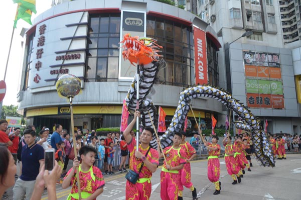 【香港商報網訊】記者潘仲男報道:香港特別行政區成立20周年,各處有不同團體舉辦慶祝活動,其中香港南區各界慶祝香港回歸祖國20周年活動委員會(慶委會)昨日在香港仔海濱公園分別舉辦大巡遊、文藝晚會及彩艇表演等。其中大巡遊同時是第3屆深港社區文化交流活動,請來多個深圳市福田區團體,在慶祝回歸之餘,加強深港兩地間居民的認識及了解,昨午雖然天氣炎熱,但無損大批圍觀市民的熱情。