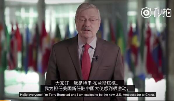 據人民網報道,在抵京之前,美國駐華大使館官方微博26日發布了一段布蘭斯塔德向中國人民致以問候的視頻,闡述他對中美關系的愿望和對駐華工作的展望。布蘭斯塔德在視頻中表示,希望到中國各地旅行,探望老朋友,結交新朋友。