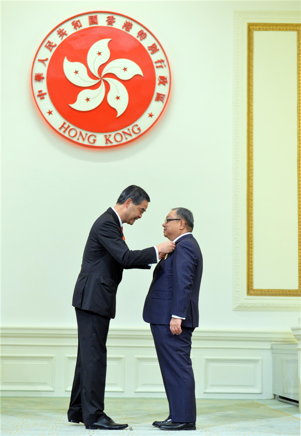 陈永棋于2016年获行政长官梁振英颁授大紫荆勋章。香港中通社