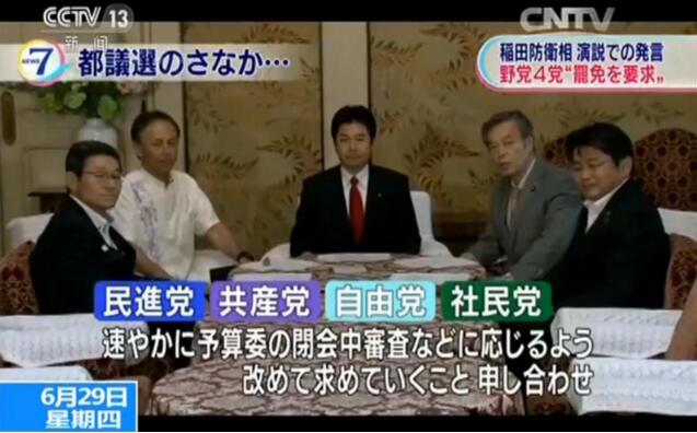而28日晚,日本民進、共產、自由、社民四個在野黨發表聯合聲明,要求首相安倍晉三立即將稻田朋美免職。