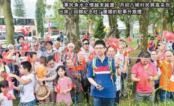 張日華說,早幾年,對駐香港部隊的印象是「比較封閉」,現在接觸多了,越走越近。他強調,「希望在不影響駐軍日常任務的情況下,多聯誼,多接觸。我們現在已經都走了幾步,希望把感情培養得更深。」而最新近一次活動是在本月3日,在八鄉「回歸紀念柱」廣場,駐軍首與鄉民聯合舉辦升旗禮、奏國歌等慶祝活動。