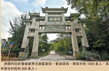 洲頭村位於香港新界元朗區新田,緊挨深圳,現有村民1000多人,其中常住村民約300多人,其他人或在九龍、港島居住,或定居海外。村子不大,環境優美,綠樹環繞,翠色欲滴,田間作物生機勃勃,耳畔有鳥鳴,抬眼有蝶舞。村屋一家挨一家,有新有舊,有三層樓也有兩層樓。回歸後民生交通都有改善