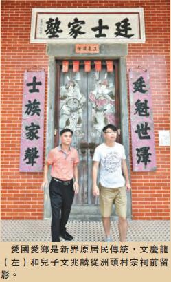 洲頭村環境變好,這20年裏,越來越多的人從海外回到香港定居。文兆麟的叔叔、伯伯也回來了,他們喜歡住在村裏並熱心村務。文兆麟的不少夥伴在國外留學後選擇回香港就業發展。「我家裏的教育是,香港始終是中國的一部分,我們是中國人。」文兆麟為自己身為中國人感到自豪。