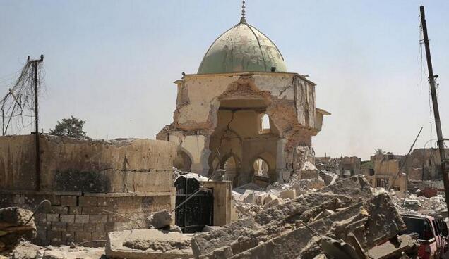 努里清真寺是伊拉克摩蘇爾的地標,有840多年的歷史。媒體報道,伊拉克政府軍6月18日起從多個方向攻入摩蘇爾老城區。6月21日,陷入重重包圍的IS武裝分子炸毀了這處清真寺及其宣禮塔,但依然控制著清真寺以及周邊部分區域。