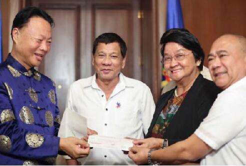 27日下午,趙鑒華大使前往菲律賓總統府,代表中國政府向菲總統杜特爾特提供1500萬比索人道主義捐贈。 圖片來源:中國駐菲律賓大使館官網