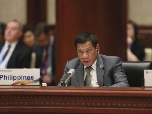 5月15日,“一帶一路”國際合作高峰論壇上,菲律賓總統杜特爾特在會上發言。(新華社發)