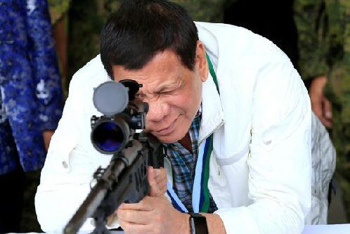 交接儀式上,杜特爾特興致勃勃地端起一把中國產狙擊步槍瞄準的新聞圖片,被菲律賓網友熱傳。