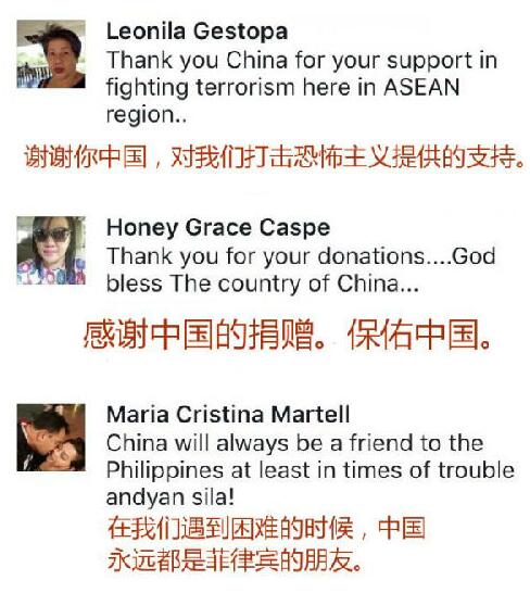 菲律賓媒體稱,來自中國的這份善意,正是忙于反恐的杜特爾特政府所“急需”的。