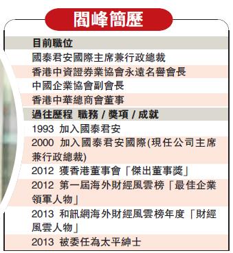 閻峰付諸心力培育國泰君安國際,使之成為本港最具影響力的中資券商之一,成績有目共睹。談話間,閻峰臉上流露的滿足可羨煞旁人。