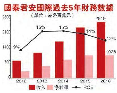 國泰君安國際成立之初獲主要股東投資3198萬,現時市值173億,增長逾400倍。多年來,公司稅后利潤5年復合平均增長率達到35%,凈資產收益率過去4年保持為雙位數,2016年凈資產收益率達12%。相較同行,資本市場給予公司更高估值,代表公司的發展模式獲得資本市場的認同。