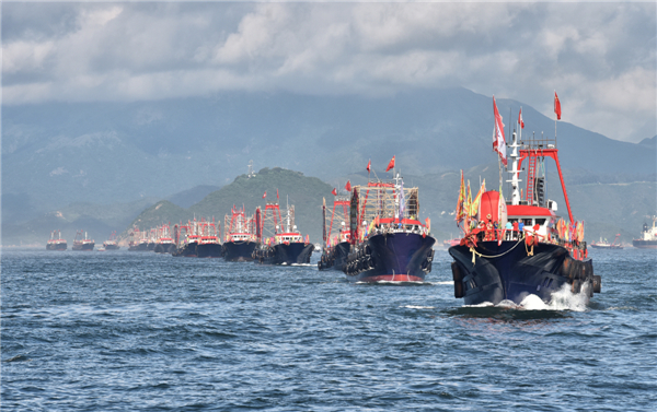 100艘新深海鐵殼漁船組成5組每組20艘船,昨早分兩批從香港仔和屯門碼頭出發,由10米高香港特色大型花牌領航船帶領駛進維港,全部漁船均插上國旗和區旗,沿途播放回歸20周年主題曲《我愛香港》,途經會展、尖沙咀鐘樓、北角等多個地方及地標,并環繞維港一周供沿岸市民欣賞;主辦單位稱活動籌備了3個月,估計有超過1000人參與。其中12艘漁船順序排出總長200米、20多尺高港式花牌大字「慶祝香港回歸祖國二十周年」,亦有船身挂上「歡迎習主席」的橫幅,水警和海事處則派出船隻到場維持秩序,確保活動順利進行。