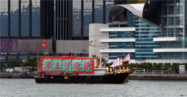 【香港商報网訊】實習記者葉柏希報道:昨日是香港回歸祖國20周年的大日子,新界各界慶委會和香港漁民團體聯會特意舉辦極富漁民傳統特色的慶祝活動「鼓舞香港慶回歸」維港大巡游,熱烈歡迎國家主席習近平視察香港及新一屆特區政府的成立。