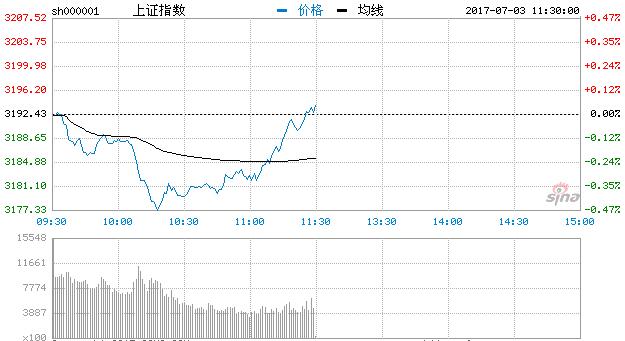 截至上午收盤,滬指報3193.72,漲0.04%,創指報1835.31,漲0.95%。