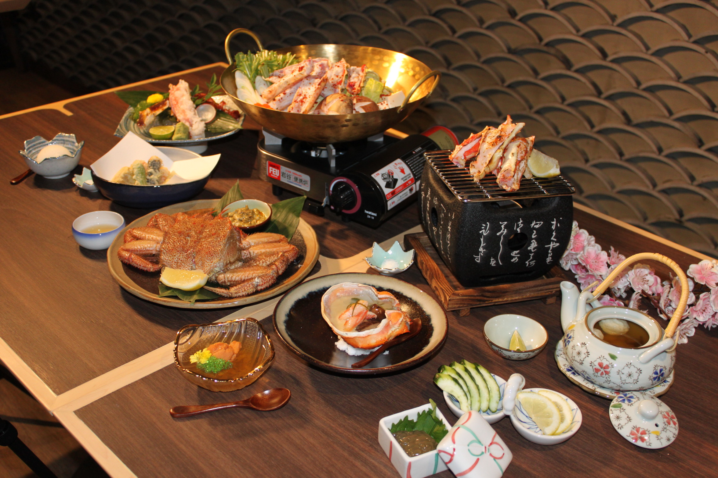 去過日本應該都去過蟹道樂拆全蟹料理,九號水產內的「蟹筵」每周五均有活蟹從日本抵港,包括鱈場蟹和毛蟹,另有阿拉斯加及太平洋北部白令海的活蟹供應,大大隻活蟹生猛鮮活夠晒吸引。大廚將它炮製成十道菜全蟹宴套餐,有齊刺身、燒物、天婦羅和蟹鍋等。亮點是鱈場蟹刺身,入口鮮美啖啖肉。另有走fusion路線的鱈場蟹鍋,內有鱈場蟹腳、日本菠菜或水菜,特別之處在於加入韓式泡菜粉,湯水濃郁帶鮮。