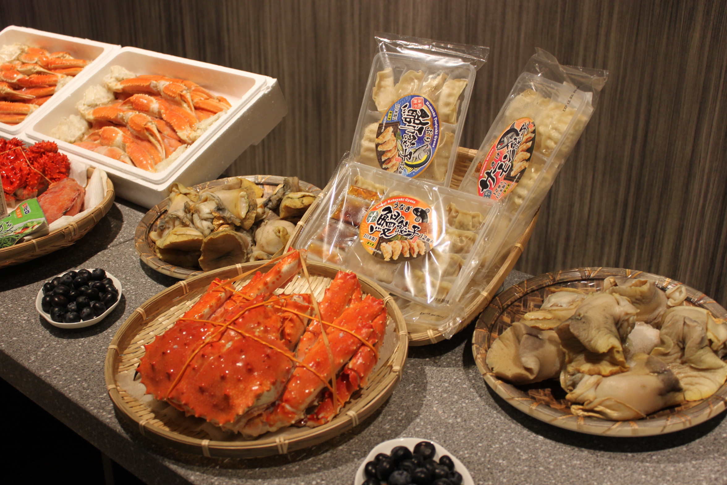 除了首階段登場4間餐廳,還有海鮮大街也是場地一大賣點。開業初期,海水系統仍在調整中,因此海產品種不算多,主要以龍蝦和海斑為主。未來將會以銷售環球野生海鮮為主打,由澳洲及東南亞亦每日源源有貨抵運。這裏提供一站式、洗、切處理服務,顧客購買後可交由同場的海鮮酒家炮製,或回家烹煮食用。至於佔地亦近七千呎的優質食材店,由新華日本食品掌舵人蔡紹霞May姐主理,設有慢煮、快煮及易食三區。慢煮區出售新鮮生料及食材,快煮區以ready to cook的預製加工品為主,易食區主打免加熱的高質即用美食。