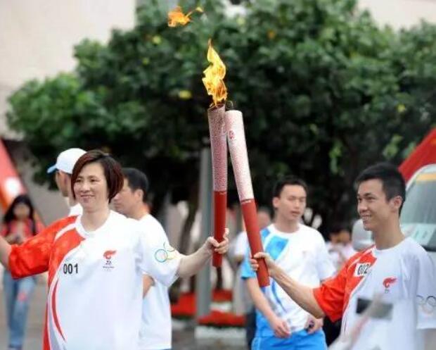▲2008年,李麗珊(左)擔任火炬手,在香港傳遞奧運火炬(圖片來源:新華社)