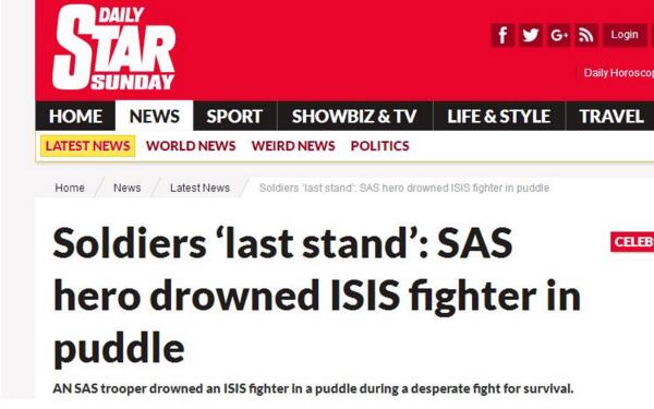 報道稱,其中一名SAS軍官把IS恐怖分子的頭部按在小水坑中,把他的臉壓到泥里,緊緊按住,直至其溺斃。