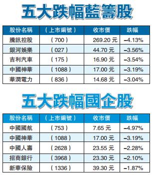 《人民網》繼日前刊文批評《王者榮耀》釋放負能量「陷害人生」后,昨再次刊文明言「社交游戲」監管刻不容緩。消息拖累騰訊股價急插,至50天線有支持,收報269.2元,是表現最差藍籌。
