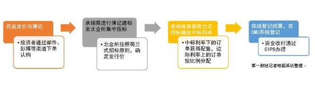 其稱,“債券通”新債開啟定價與簿記后,境外投資者可以通過傳真、郵件或者是彭博等系統來下單,并匯集到各個承銷商手中。承銷商們拿到了境內外各個投資者的下單價格和標位后,會在北金所(北京金融資產交易所)或中債登的系統中進行集體投標。北金所或中債登會按照荷蘭式招標的規則,從而獲得最終的發行價格和各個機構的最終中標量。