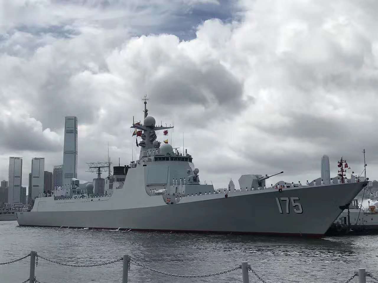 「熱烈歡迎海軍16艦編隊赴港參加解放軍進駐香港20周年慶祝活動」7日上午10時在昂船洲基地舉行。兩艘驅逐艦和一艘護衛艦分別進港,市民在昂船洲碼頭歡迎「三艦客」抵達昂船洲。