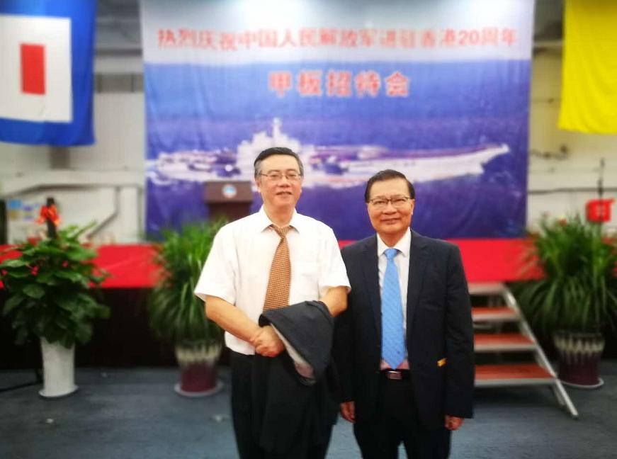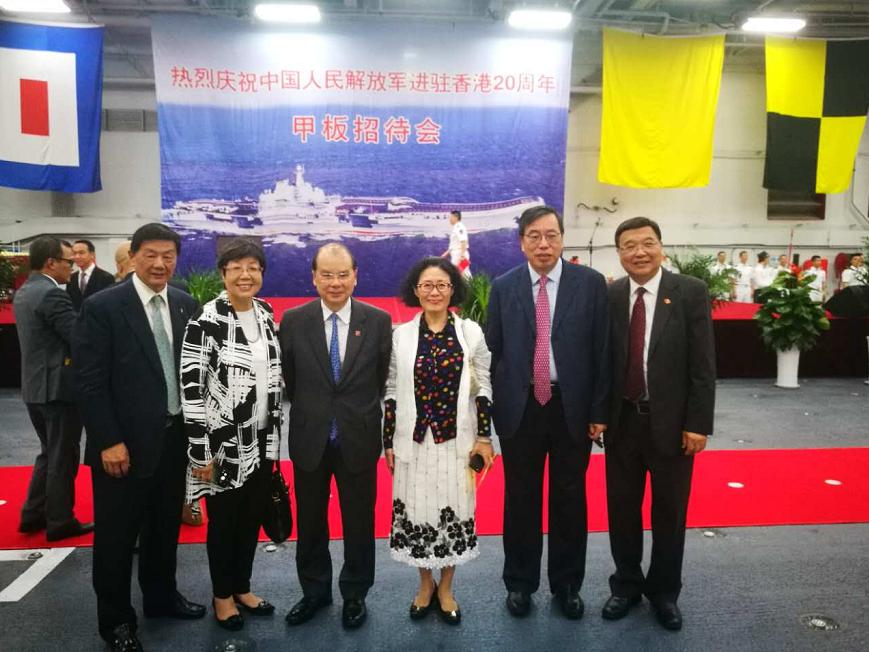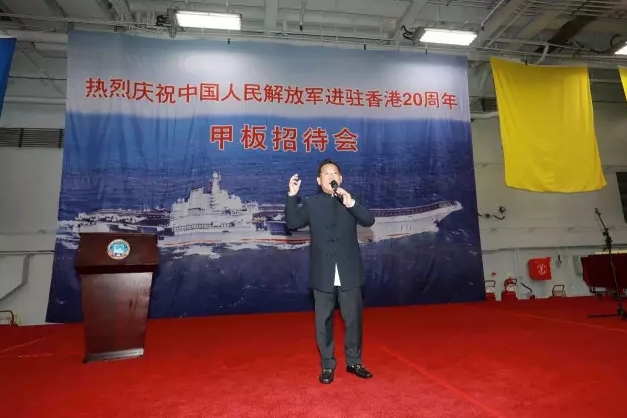 【香港商报网讯】史上首度航母甲板招待会,此刻正在抵港的辽宁号上盛大隆重举行。招待会已于今(7日)晚7时开启,据悉,全国政协副主席董建华、何厚铧、梁振英、特首林郑月娥、中联办主任张晓明、中联办副主任杨建,以及外交部驻港特派员公署特派员谢锋均出席了招待会,并担任主礼嘉宾。海军政委苗华上将也赴会,驻香港部队司令员谭本宏、政治委员岳世鑫应邀出席,显示军方对此次活动的高度重视。海军副司令员、编队指挥员丁毅致辞。