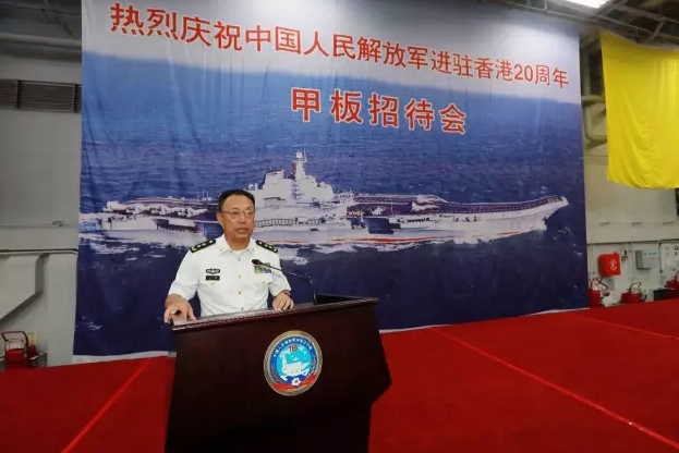 丁毅在招待会上致辞说,海军辽宁舰航母编队来港参加解放军进驻香港20周年庆祝活动,是为了让香港同胞进一步了解党的十八大以来国防和军队建设,特别是海军建设取得的巨大成就,了解新一代海军官兵的风采风貌;是为了让官兵切身感受“一国两制”的成功实践,领略“东方之珠”的秀丽和繁荣。