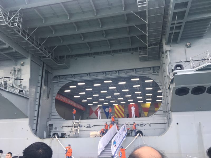 辽宁舰甲板上五星红旗飘扬。记者 陈寅摄